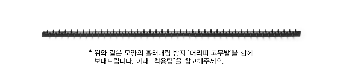 머리띠를 더 단단하게 고정하여 착용하고 싶을때는 동봉되어 있는 "머리띠 고무발"을 붙여서 착용해주세요. 양면테이프 흰 종이를 떼어 내신 뒤 머리띠 안쪽면 원하는 위치에 붙여주시면 됩니다. 보내드린 고무발 그대로 붙이셔도 되고, 원하는 길이만큼 잘라서 여러군데 나누어 붙여도 됩니다. 붙였다가 제거 하여도 끈적임이 남지 않으니 염려 마세요!